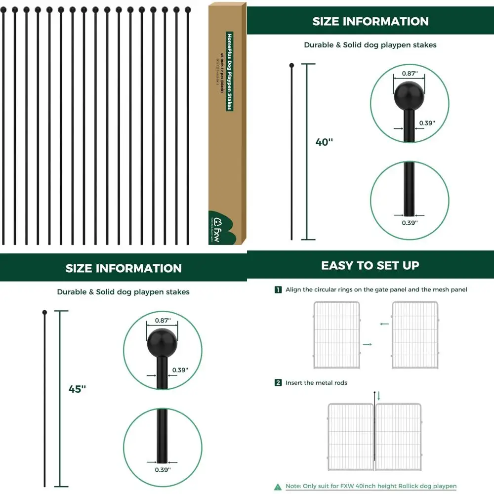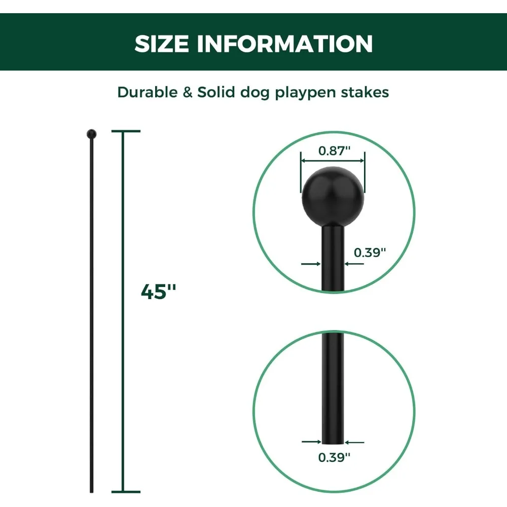 We provide a range of fence rods in various sizes and quantities to suit your needs. Choose from 24-inch, 32-inch, and 40-inch lengths, available in sets of either 9 or 17 poles. These extra posts allow for easy configuration of the fence in a straight line, L-shape, or as two separate sections, catering to different layout requirements without any hassle. Switching between indoor and outdoor use is a breeze with our pet fence. Simply use different stakes to adapt the fence to different environments, whether due to seasonal changes or specific needs. No tools or complicated installations are required; just replace the poles for the fence’s versatile functionality. Safety is a priority in our design. The posts feature rounded ball tops to protect your dog’s claws from injury. The rods are crafted with a thickness of 0.4 inches for enhanced stability and rigidity, ensuring they won’t collapse even when leaned against by your pet. For improved stability, anti-slip silicone pads are installed on the poles. These pads provide friction to minimize the chances of the fence being pushed down or dismantled by your dogs. They also prevent the rods from scratching your floors. For outdoor pet play areas, we recommend our outdoor poles, which have a conical bottom design for easier insertion into the ground.